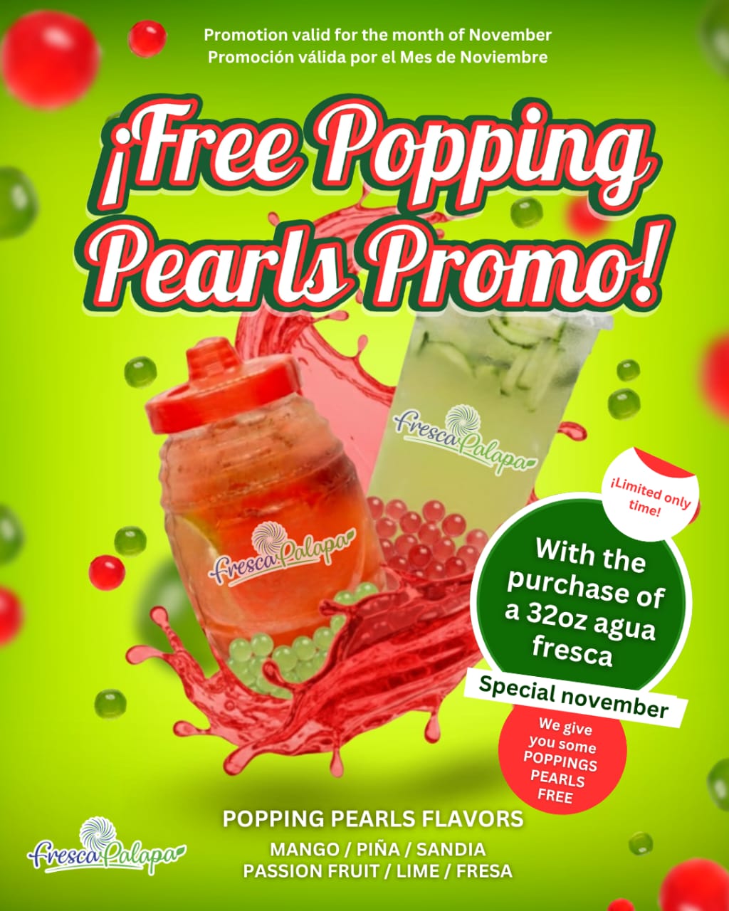 Every month at Frescapalapa, there’s something exciting waiting for you. From special promotions to flavor-packed events, you’ll always have a reason to stop by and enjoy our refreshing aguas frescas.