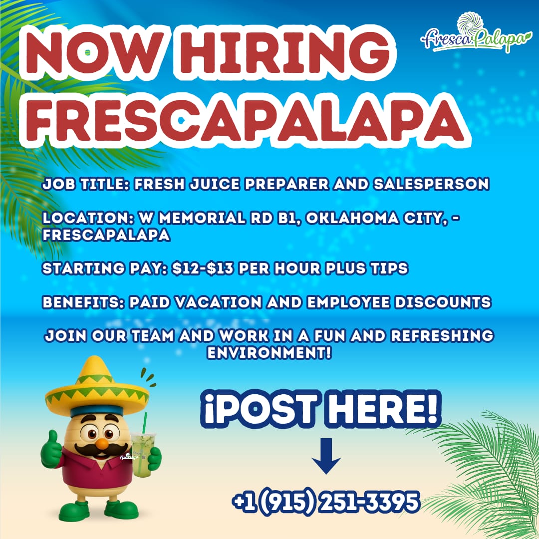 Frescapalapa is now hiring! 🌴🥤 Join our team and work in a fun and refreshing environment.